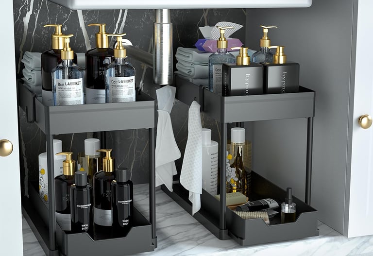 DEKAVA Under Sink Storage 2 Pack, 2 Tier Sliding Organiser (Multiple Colors)