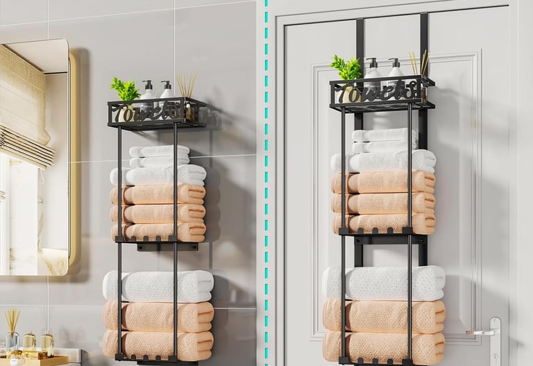 HapiRm Over Door Towel Rack - 3 Tier Towel Rack Wall Mounted (Multiple Colors)