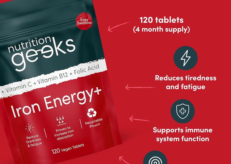 Iron Tablets High Strength - 120 Tablets with Vitamin C, B12 & Folic Acid
