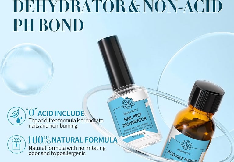 BORN PRETTY Nail Dehydrator and Primer Set, 15ml Acid Free Natural Nail Prep Dehydrate