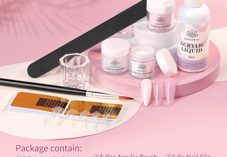 BORN PRETTY Acrylic Nail Kit - Powder & Liquid Set, Pink, White, Clear Acrylic Powder